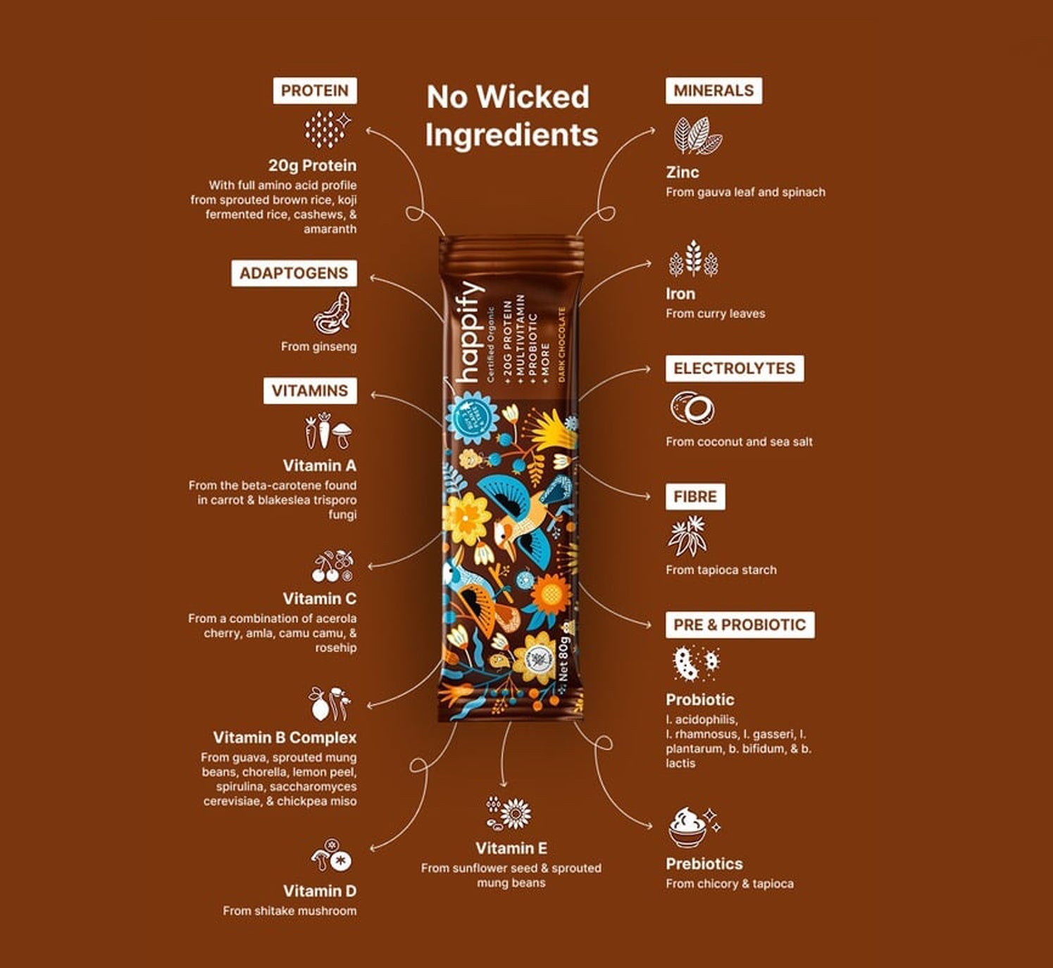 Happify バーにはどれくらいの量のビタミンが含まれていますか?